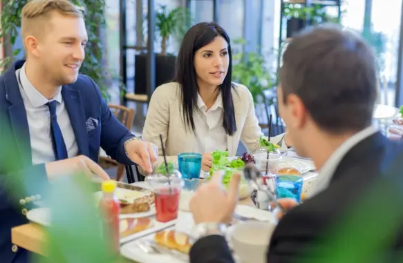 Priorizar uma alimentação mais leve e servir muita água e sucos colabora com o bem-estar dos funcionários, possibilitando que estejam dispostos a dar prosseguimento, com qualidade, às suas tarefas.